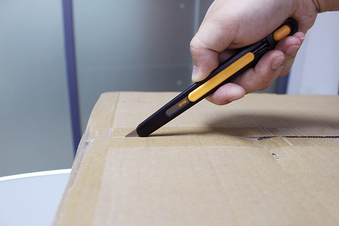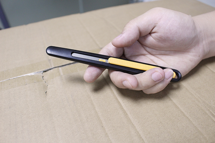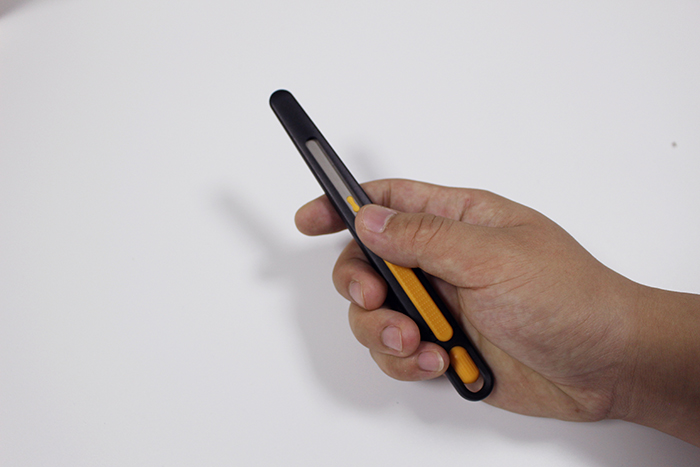 5. 完成修邊作業后,放松握緊安全刀具的掌心及讓刀片慢慢地自動回彈到刀柄內。